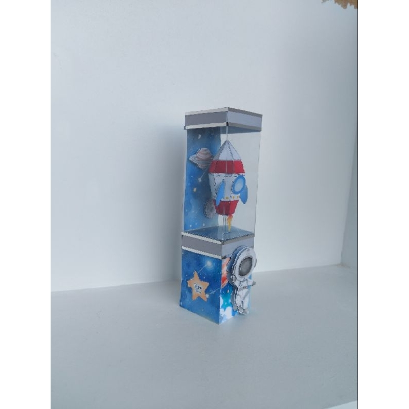 Entre os destaques estão a caixa com astronauta na lua, as caixas com visor transparente e elementos internos que remetem ao espaço, além das peças com foguete e planetas que completam a composição do kit.